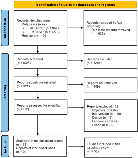 Subsequently, a systematic search of articles was conducted in the electronic databases MEDLINE (OVID interface) and EMBASE (Elsevier interface) from 2016 to June 10, 2021. The search strategy was initially developed in MEDLINE, using a combination of controlled vocabulary and free text terms and was then adapted for EMBASE. The full search strategy is available in Supplementary File S3.