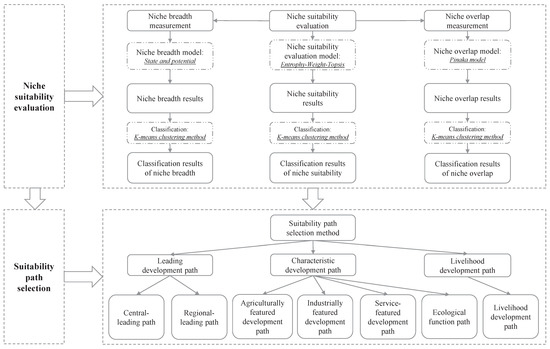 The study on the niche suitability evaluation and path selection for the high-quality development of cities in the YRB involves a combination of theoretical foundations and methodological innovations that are generalizable and replicable. Figure 2 shows the flow chart of the study structure.