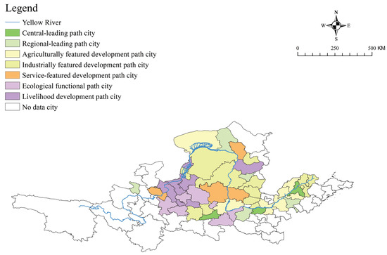 The characteristic development path refers to the development strategy that gives full play to the characteristic industrial advantages of cities and plays a key role in promoting the regional division of labor for the high-quality development of YRB cities. The cities that selected this path are those with significant competitive advantages in a certain sub-dimensional niche in the basin. Compared with the leading developmental cities, the development of these cities is not that balanced, but the characteristic development and regional division of urban labor are also important driving forces for high-quality development. There are 35 cities in this study that were selected for the characteristic development path. According to the differences in advantageous features, they are subdivided into the agriculturally featured development path, industrially feature development path, Service-featured development path, and ecological function path.