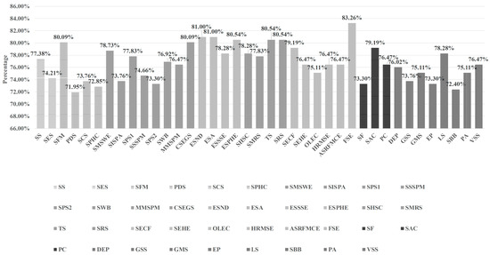 Respondents’ preferences for community services in smart communities are presented in Figure 2, which shows that almost all of the community services in smart communities were needed by more than 70% of the respondents and over 80% of the respondents needed the SFM (80.09%), the SEGS (80.09%), the ESND (81.00%), the ESA (81.00%), the ESPHE (80.54%), the TS (80.54%), the SRS (80.54%) and the FSE (83.26%).