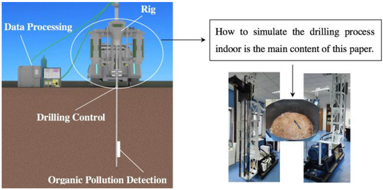 However, when drilling in non-homogeneous formations, the depth and point position of direct push drilling may be deviated by the force of the formation. Deviations in the depth and point locations of direct push drilling will lead to inaccurate conclusions due to the uneven spatial distribution of contaminants. Therefore, the adaptive adjustment and control of the drilling trajectory is the improvement of the current study. The support project of this study combines in-situ investigations and trajectory control to effectively bridge the gap between existing techniques. Precise drilling and control are the key technologies indicated in Figure 1. In this paper, a chain-type direct push (C-DP) drilling system is introduced, including its structure, composition, and main functions. It can simulate the on-site drilling to detect the drilling control process. The rig can also be equipped with selective semi-permeable membranes, heating equipment, and information acquisition and transmission equipment. In addition, it can provide indoor test conditions for the study of the control of the trajectory of direct push investigation equipment. The C-DP drilling rig is mainly applied in the field of contaminated site investigations, and it does not vibrate and rotate during drilling operation.
