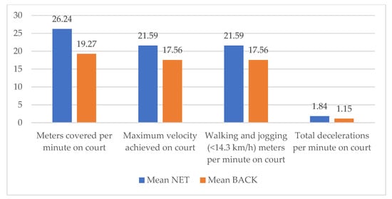 p = 0.00). A visualization of the differences between the groups of ball kids at the back of the court and by the net is presented in