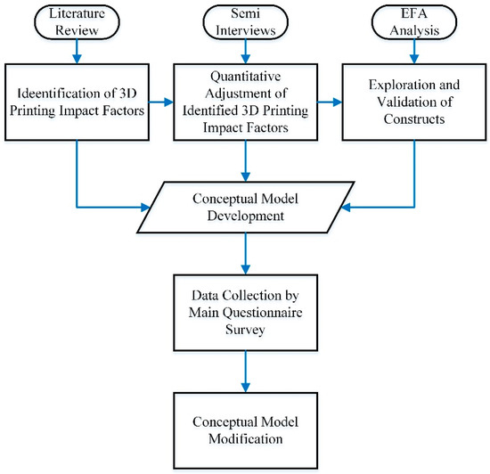 The methodology flowchart is presented in Figure 2. Fifteen specialists in the Malaysian residential building industry were contacted to validate and classify the 3D construction impact factors according to Table 1. Zyphur and Pierides [96] stated that it has been shown from prior research that there are just a handful of worldwide drivers impacting 3D printing acceptance and regulatory focus. Therefore, this study included a pair of questionnaires. Before using measuring equipment in the main research, it is standard practice to perform a pilot study to ensure its accuracy. Primary research is the next stage to test this notion.