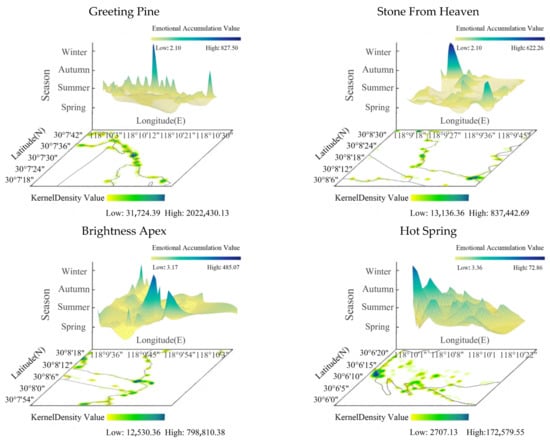 Yan, J.; Yue, J.; Zhang, J.; Qin, P. Research on Spatio-Temporal Characteristics of Tourists’ Landscape Perception and Emotional Experience by Using Photo Data Mining. Int. J. Environ. Res. Public Health 2023, 20, 3843. https://doi.org/10.3390/ijerph20053843