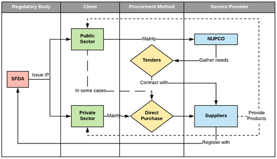 The third and last stakeholder was described in this study as the service providers. This includes many levels of establishments, such as the semi-governmental company NUPCO and drug manufacturers or the agents importing these products to the market. They are considered the operational side of these processes, unlike the clients who account for the core business aspect. This group’s primary role is to provide the required amounts of drug items to the clients, such as negotiating contracts, closing deals, deliveries and distribution, and warehousing operations.