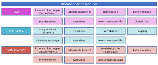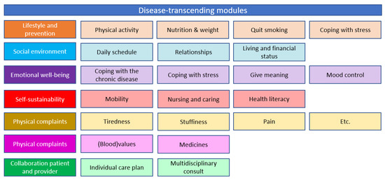 Disease-specific and disease-transcending modules provided through the new care plan and delivered if needed by the patient.