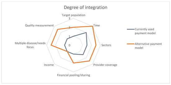 Figure 4 shows the degree of integration of the proposed payment model and the currently used bundled payments for the SDMPs on the eight dimensions of the framework based on Stokes et al [46]. Table 4 explains the levels that were expected for each domain.
