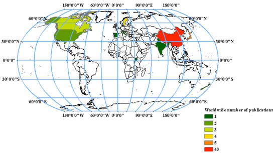 The distribution of publications used in meta-analysis related to GHG emission from CWs.