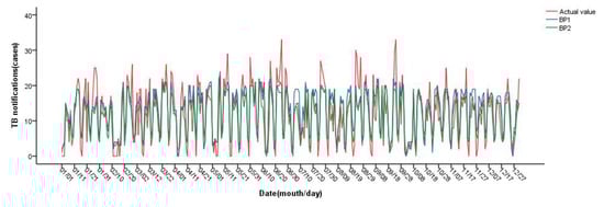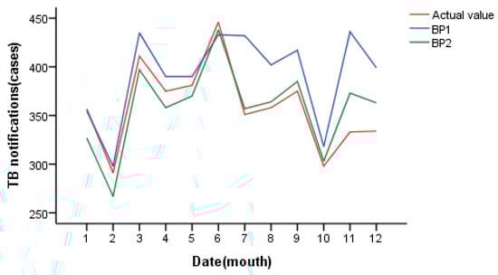 46]. The BP neural network model is intuitive and has good prediction ability. It was the best prediction model for tuberculosis in this study, which suggests that the BP neural network model can be used as a method to predict the incidence trend of infectious diseases by using external factors such as weather and air pollutants.