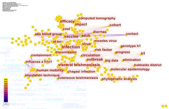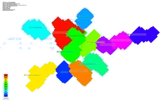 Among bibliometric approaches, social network analysis study visualization is a developing field. Nine significant software programs have been specifically created to use research mapping to assess scientific fields []. Chaomei Chen developed the CS, an open Java science research software package from Drexel University in the United States []. Owing to its strong and effective properties, it is widely used and recognized throughout the world []. As a result, CS was used to visualize and evaluate epidemic control based on big data research literature.