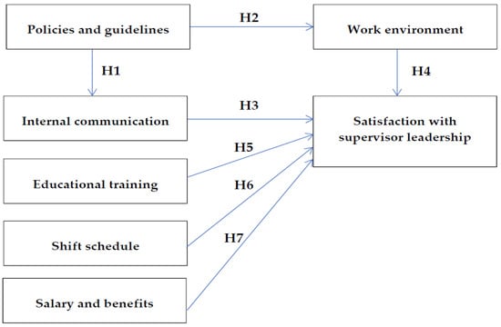 The scale assessing nurse satisfaction with supervisor leadership developed in this study has proven to be valid and reliable as well as applicable in clinical settings. Following our preliminary results, it is advisable to increase the number of enrollments for further validation. Overall, the satisfaction of nurses with the policies and guidelines was directly associated with their satisfaction with supervisor leadership and also induced greater satisfaction with supervisor leadership through internal communication. Furthermore, satisfaction with shift schedules and educational training was directly associated with the overall satisfaction with supervisor leadership, and satisfaction with shift schedules and internal communication had a greater association with satisfaction with supervisor leadership. In contrast, satisfaction with the salary and benefits and the work environment was not significantly associated with the overall satisfaction with supervisor leadership.