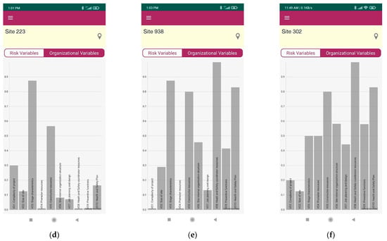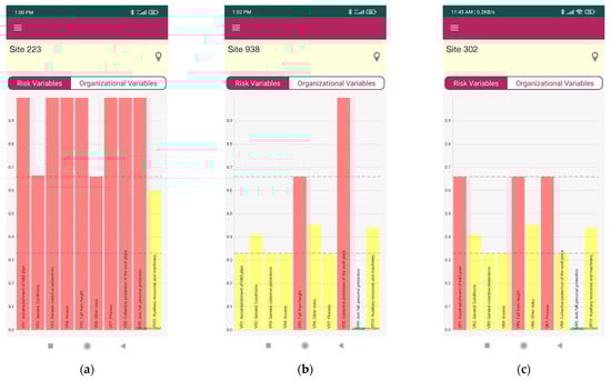 Table 3 shows the different risk and organizational variables obtained on three sites with different levels of risk: one with a high level of risk (site code 223), another with a low level of risk (site code 938), and finally, the last site with a medium level of risk (site code 302). This is the information obtained after the mentioned third step that corresponds with the graphics in Figure 3. Numerical results in