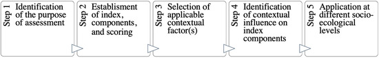 The first step in the conceptual Holistic Dietary Quality Assessment Process is to identify the purpose or goal of the assessment to provide direction for the contextualization of overall dietary quality and how the assessment might be applied. Once the goal of the assessment has been identified, the next step is to select the most appropriate dietary index, including its components and scoring methods. For the examples we have provided, we used the DQI-I due to its applicability to different populations and settings [22] where this assessment process might be used [50]. The next step is to select a contextual factor or factors that are thought to potentially influence overall dietary quality. The factors listed in the assessment process model are nowhere near exhaustive of the biomedical, social, or environmental factors that could be present in a population. Additionally, it is understood that these factors are highly interconnected. Once the contextual factors have been identified for measurement, a critical analysis of each index component should be conducted to determine what aspects of dietary quality may be influenced by the selected contextual factor, whether that be variety, adequacy, moderation, balance, or another index component. In other words, what components of the dietary index are being negatively affected due to the additional social or environmental factors. These considerations may add valuable context for evidence-based practices, allowing for the translation of dietary quality scores to the appropriate post-assessment recommendations based on the social and environmental factors that influence dietary quality.