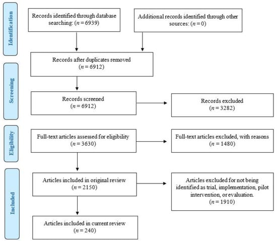 - King, L.A.; Newson, R.S.; Cohen, G.E.; Schroeder, J.; Redman, S.; Rychetnik, L.; Milat, A.J.; Bauman, A.; Chapman, S. Tracking funded health intervention research. Med. J. Aust. 2015, 203, 184. [Google Scholar] [CrossRef]