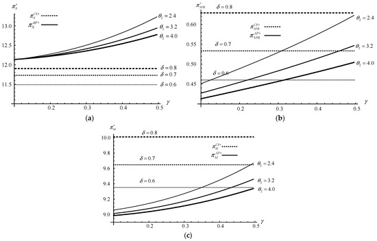 The two platform participation strategies are compared by adjusting three key parameters (i.e., θ2, γ, and δ), and Result 3 shows the following: (1) a higher cost-sharing proportion of recycling costs for the 3PR can improve the profits of the supplier, the manufacturer and the 3PR as well as the whole profits of the CLSC under strategy CS (i.e., , where i = S, M, 3PR), which extends the conclusion of Corollary 2; (2) the low scaling parameter of recycling cost by the manufacturer and high sensitivity coefficient of recycling effort level by the manufacturer to demand can promote the profits of each firm (i.e., and , where i = S, M, 3PR).