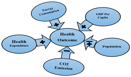 7]. Consequently, health outcomes, economic growth, and energy consumption are organically related. Better health outcomes not only induce population expansion; they also boost the working abilities of the labor force, thus accelerating economic growth. Again, population expansion will require more energy to sustain the population’s growth pace. In contrast to economic development, industry flourishes, resulting in many environmental pollutants such as CO