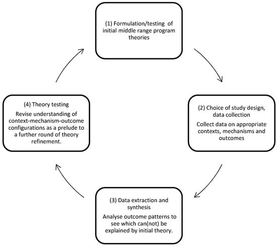 We followed the four phases of the realist evaluation cycle, as illustrated in Figure 1 [,].