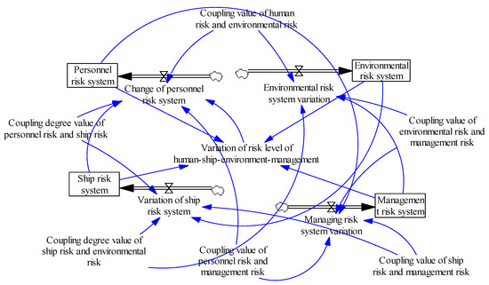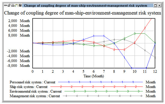 The system dynamics software Vensim PLE 5.9c is used to simulate the risk coupling. By changing the degree of influence between the coupling effects in the variable analysis, we can determine the change in the coupling time of system risk caused by two-factor coupling. Among three factors, we adjust the coupling variables of the personnel–ship–management system through changing a single system variable or several system variables. Finally, combined with the simulation results under different conditions, some suggestions for risk coupling control are given.
