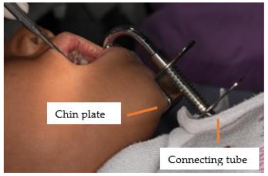 According to the World Health Organization (WHO), the ultimate goal of service delivery is to provide high-quality care in a fair manner []. Oral health inequity remains a major problem in several countries, including Thailand, not only in terms of accessibility, but also in terms of oral health [,]. To improve accessibility, dental services have been established in sub-district health promoting hospitals (SHPH) in Thailand and dental nurses have been assigned to provide preventive care to children. However, due to limited resources, the presence of dental assistants in the Thai oral health system is insufficient []. There are 3584 dental nurses, while only 213 dental assistants work at the sub-district level []. Dental caries continues to be a major problem. The most recent national oral health survey in Thailand [] found that 52.0% of 12-year-old children suffer from dental caries. Therefore, the dental sealant program in schools recommended by the American Association of Community Dental Programs [] has been implemented nationally in Thailand since 2005. However, this program struggled with quality issues [,,], especially in the Thai context, of short-term retention related to moisture control problems [,]. Recently, an innovation (tongue and cheek retractor and saliva contamination (SS-suction)) was invented to improve the quality of sealing by increasing the quality of moisture control, especially for the lower jaw under the shortage of dental assistants. The SS-suction is a universal design and consists of three parts (Figure 1). The aspirator tips are covered with silicone tubes that reach the buccal and lingual sides of a tooth. The chin plate is pressed against the chin and fixes the suction in place. The last part is the connecting tube, which is connected to the saliva tube of the dental chair (Figure 1, Figure 2 and Figure 3) []. This innovation was invented by the authors (ST and ST) and tested for safety both in the laboratory and in a pilot trial on school children [,]. The aim of this study was to investigate the satisfaction of dental nurses and to compare the effectiveness of dental sealant (caries) under two conditions: SS-suction without dental assistance and high-power suction with dental assistance.