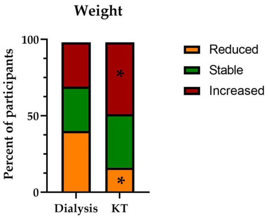 Weight change since the start of dialysis or KT. * p < 0.05.