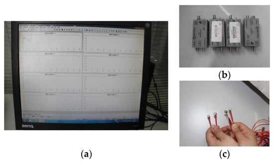 Acoustic emission system. (a) acoustic emission acquisition system; (b) amplifier; (c) sensor.