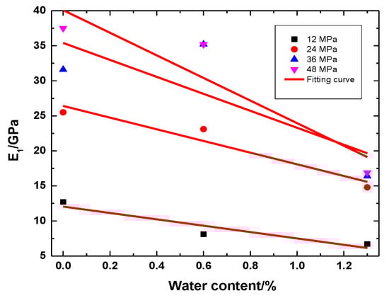 Instantaneous elastic modulus of rock samples in a saturated state at different stress levels.