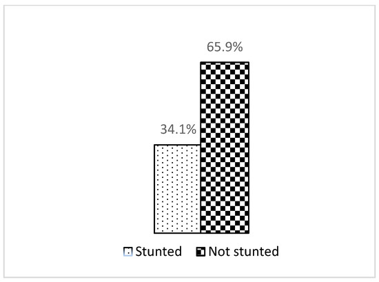 As shown in Figure 1, this study showed that the prevalence of stunting was 34.1%, which was a little bit higher than the national prevalence among those under five years old (33.1%).