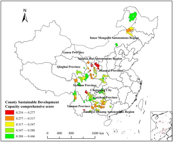 - The sustainable development capability of a region is the product of the synergistic interaction of economic, social, and environmental multidimensional factors. In addition to the economic factors that are traditionally perceived as dominant factors, the environment also plays a considerable role. The overall CSDC score in key counties to receive assistance in pursuing rural revitalization in China was low, which is reflected by the deficiency of secondary indicator capacity, the incongruity of EAC, SDC, and ECC, or the existence of “weaknesses”.
