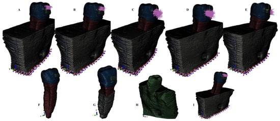 Figure 2) for each of the nine models, obtaining a total of eighty-one models. As a downside of the manual reconstruction technique, a limited number of surface anomalies/irregularities had been present in all models, but with quasi-continuity in all areas affected by stress, the internal processes (i.e., algorithm-based) have been passed. The mesh convergence testing was performed for all models. Both software (AMIRA and ABAQUS) prevent the mesh creation and the FEA analysis (i.e., due to internal algorithms) if many surface anomalies are present, allowing only a limited number of anomalies that do not interfere with the process. Nonetheless, a limited number of surface anomalies and irregularities was expected to remain even after several mesh-smoothing processes but without interfering with the analysis or results (e.g., the models presented in