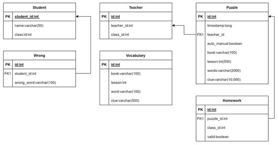 The Termbot system stores all medical terminology in a relational database named PostgreSQL [21]. As a gamified learning tool, Termbot utilizes the open-source software PostgreSQL 15 to manage and organize its database. PostgreSQL is an open-source relational database management system similar to other proprietary systems such as MS SQL and Oracle. However, unlike these systems, PostgreSQL is available as a free and open-source software. Figure 2 illustrates the relationships within the database.