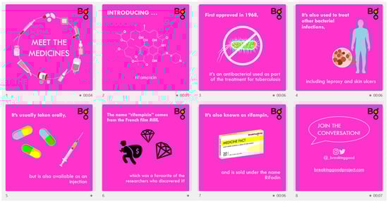 All resources participants use in the creation of these videos are stored within a folder on Breaking Good’s Google Drive (https://drive.google.com/drive/folders/13crP2Guh1HIdiaa90tjr6F4b0QJuyJ-W?usp=sharing, accessed on 20 January 2023) and have been shared through GitHub (https://github.com/TheBreakingGoodProject/Essential-Medicines/wiki/Meet-the-Medicines!, accessed on 20 January 2023) and the website. The final videos are saved in this folder for easy access by other participants and the project management team. Google Drive was chosen to lower the barrier to participation, as all documents and icons can be duplicated and edited online, meaning that only an email address and internet connection are required to create a video (removing the need for additional software).