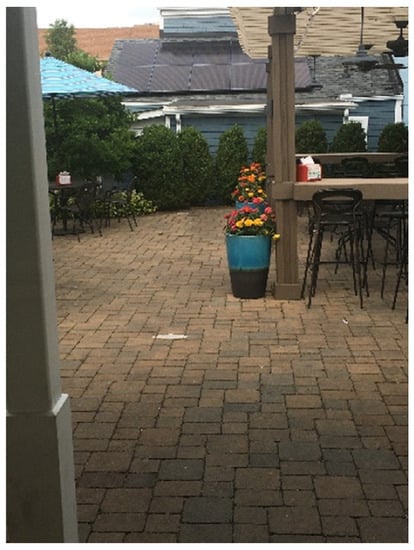 Theme 2 highlights the ways that youth felt able to release feelings of overstimulation through exposure to nature. One youth shared a photo with a flowerpot on a patio (Figure 3). He shared that the photo was taken during a particularly stressful work shift in a suburban restaurant, but when he stepped onto the patio during a break, he appreciated the touch of colorful nature there.
