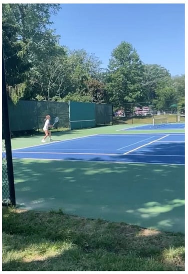 Another participant shared a photo of an outdoor tennis match (Figure 4). During the discussion, she shared that she had always enjoyed playing tennis outside but had not connected that being among the trees and grass of nature contributed to her enjoyment and stress relief.