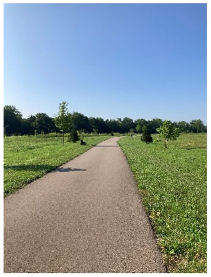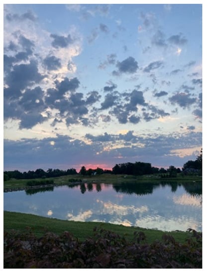 Two participants shared photos of open green spaces, one a pond at a golf course (Figure 6) and the other a paved path (Figure 7). Interestingly, the photo of the paved path was originally presented with negative connotations, with the participant sharing that she did not perceive as much benefit from man-made or cultivated nature versus wild nature. However, after group discussion, that photograph became representative of the need for space.
