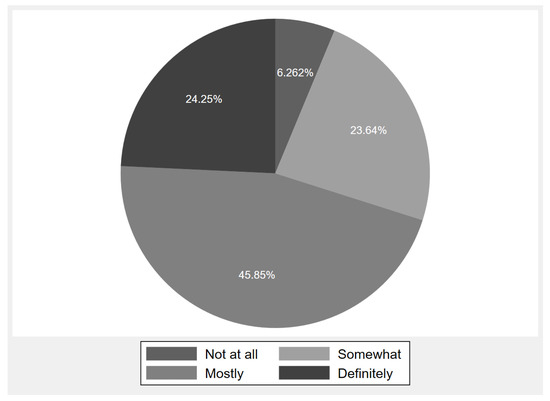 The majority of patients reported that they had definitely (24.3%) and mostly (45.9%) easy access to CDM services from nearby primary care facilities (Figure 2). Table 1 shows the differences in sociodemographic characteristics and HRQoL between easy-access and not-easy-access groups. Compared to the not-easy-access group, the easy-access group showed a significantly higher percentage for the following variables: males (52.9% vs. 49.6%, p = 0.028), living in the eastern region (34.3% vs. 27.7%, p ≤ 0.001), urban area (67.0% vs. 63.4%, p = 0.01), college/Bachelor’s degree or higher education level (38.3% vs. 34.4%, p = 0.008), working, studying, or retirement processed (69.7% vs. 63.4%, p ≤ 0.001), no injury in the past year (81.6% vs. 78.0%, p ≤ 0.001), Level 5–7 subjective socioeconomic status (44.6% vs. 34.7%, p ≤ 0.001), monthly income higher than 4000 yuan (49% vs. 37.8%, p ≤ 0.001), have medical insurance (96.8% vs. 94.4, p ≤ 0.001), smoking (22.0% vs. 18.4%, p = 0.009), and strongly or very strongly agree that can get social support from family (47.3% vs. 39.5%, p ≤ 0.001).