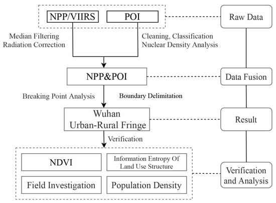 Yu, J.; Meng, Y.; Zhou, S.; Zeng, H.; Li, M.; Chen, Z.; Nie, Y. Research on Spatial Delineation Method of Urban-Rural Fringe Combining POI and Nighttime Light Data—Taking Wuhan City as an Example. Int. J. Environ. Res. Public Health 2023, 20, 4395. https://doi.org/10.3390/ijerph20054395