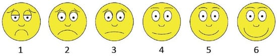 Upon arriving at the C2C Giving Factory, participants gave informed consent and reported their child’s gender. Afterward, participants received an orientation from C2C staff members to learn how to inspect, sort, and package donations and to learn more about the study. During the orientation, children were familiarized with a six-point scale used to rate feelings of happiness (see Figure 1). The scale ranged from “really not happy”—represented by a large frowning face and the number one—to “really happy”—represented by a large smiling face and the number six; see OSF for sample script used to explain the scale. Following the orientation, children were given a printed version of the happiness scale and were asked to indicate their pre-volunteering happiness (i.e., “How do you feel right now?”).