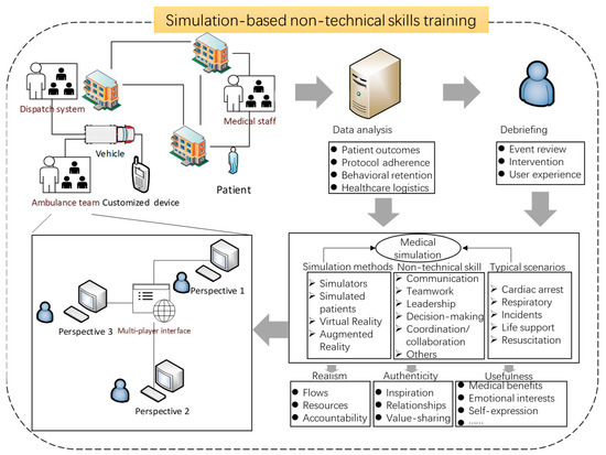 The majority of professions specialising in emergency medicine could be actively involved in centre-based simulations with larger facilities or pilot test activities taking place on the premises. Whilst the Tea Bag Model was applied in the early days [17], medical students were required to join a specialist department, spend around three to five years of study, and pass a specialist examination before becoming an attending physician. Later, the concept of competency-based medical education was proposed by the World Health Organization to pinpoint the intended output as a health professional who can practise medicine at a defined level of proficiency [18]. The tendency towards a competency-based approach, which serves as the foundation for a new accreditation model [19], has attained popularity in medical education. Recently, research has given rise to the confirmation of experiential learning theory [20] and flipped learning styles [21,22]. Nevertheless, there has been little discussion about the opportunities that medical simulation provides for non-technical skills training in emergency medicine, as to which non-technical skills can be trained, what types of simulators are available, and which analytical methods are required to process data collected from the operational clinical environment.