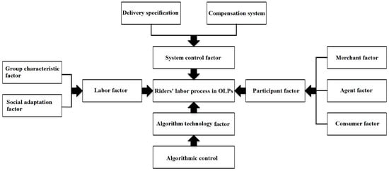 According to the grounded theory, we can determine the influence factors of riders’ labor process. Due to the application of algorithmic management in OLPs, the labor control of take-out riders revolves around the core factor of time. Therefore, the influence factors of riders’ labor process can be divided into objective factors (system control factor, algorithmic control factor, and participant factor) and subjective factors (labor factor), which are shown in Figure 1.