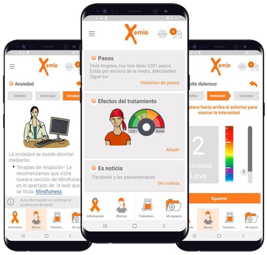 Figure 1), an app designed by patients and doctors, and all its content is reviewed and updated by oncology professionals to help patients with their disease self-management and social issues. The platform, built for smartphones, helps patients and their families track side effects and treatments, as well as participate in activities and social events organized by various associations. The Xemio platform is endorsed by the SOLTI scientific societies dedicated to breast cancer research and the Catalan Society of Family and Community Medicine (CAMFiC). It has received support from the “la Caixa” Foundation, a Europe Horizon 2020 grant, and crowdfunding.