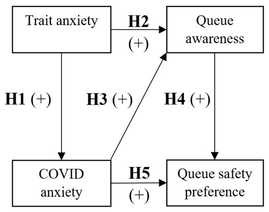 COVID-19 anxiety will have a positive, indirect effect on customer queue safety preferences through queue awareness.