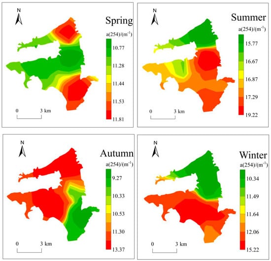 Spatial–temporal trends of a(254) in Bao’an Lake by season.