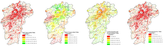 where is the total value of ecosystem service function for cultivated land; is the value of soil conservation service function; is the value of water conservation service function; is the value of carbon fixation and oxygen release service function.