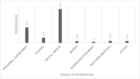 When asked if they had heard about ASD, 88.8% responded positively. However, when asked to rate their degree of knowledge, only 8% felt that they were familiar with autism. The main source of their information was social media (54.34%) (Figure 1).