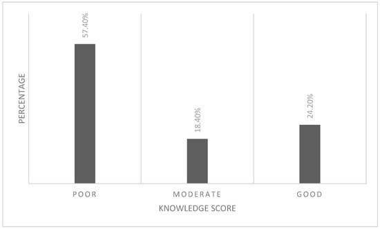 Participant’s knowledge score. Knowledge score < 50% = poor knowledge, 50–75% score = moderate knowledge, >75% score = good knowledge.