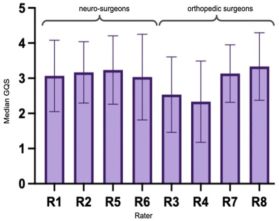 We observed a slight rater agreement on GQS; however, we also found that neurosurgeons rated the videos significantly higher than the orthopedic surgeons.