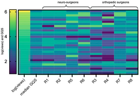 Figure 2). Median GQS also showed correlation with the number of likes, and again only the scores assigned by rater 6 were statistically significantly associated (Spearman’s rho = 0.50,