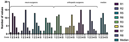 Figure 3). A Mann–Whitney U test showed no significant difference between neurosurgeons and orthopedic surgeons (