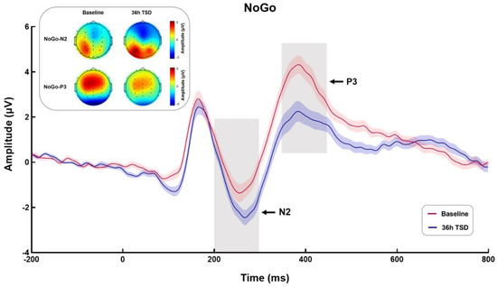 - Gosselin, A.; De Koninck, J.; Campbell, K.B. Disentangling specific inhibitory versus general decision-making processes during sleep deprivation using a Go/NoGo ERP paradigm. Int. J. Psychophysiol. 2019, 141, 18–27. [Google Scholar] [CrossRef] [PubMed]