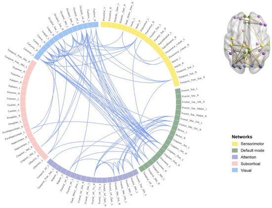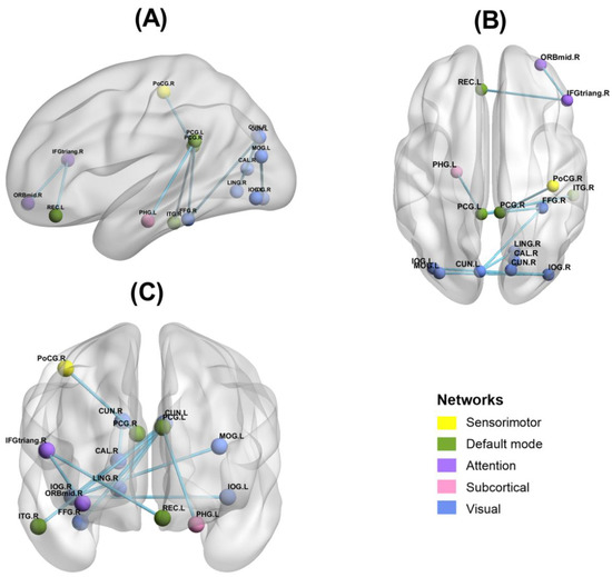 - Xia, M.; Wang, J.; He, Y. BrainNet Viewer: A network visualization tool for human brain connectomics. PLoS ONE 2013, 8, e68910. [Google Scholar] [CrossRef] [PubMed]